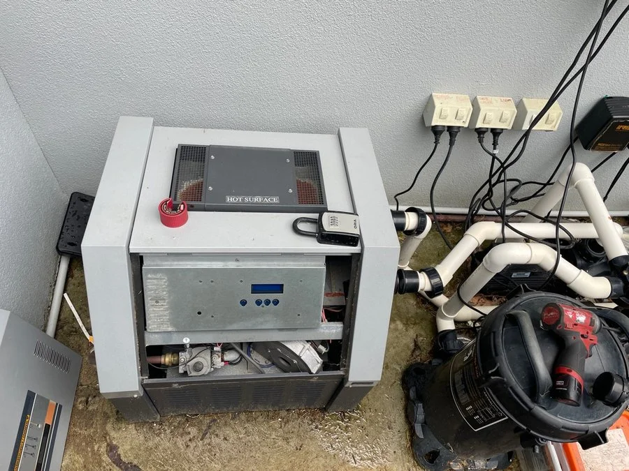 For one of our recent customers, their old pool heater was in desperate need of an upgrade and we were able to help them. Here is what their old pool heater looked like.